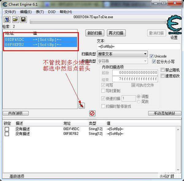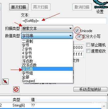 然后输入文本:-=[SoftBp]=- ,按下图所示点击一下首次扫描。