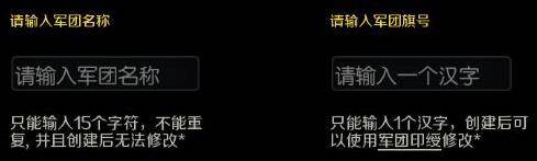 军团旗号只能输入一个字,小编在这里要跟大家说一定要起一个霸气侧漏的!看上去就让其他人肝颤,而且一次到位,不能修改,哼~