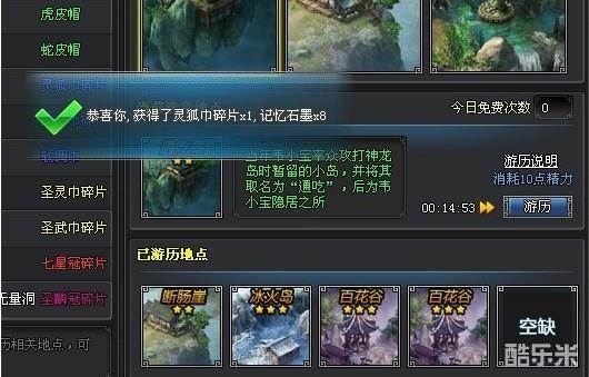 目前本号还没有游历和探索出遗图碎片,探索已经扔进去100多万铜板了,还没有探到一个,不我脸太黑就是几率太低。
