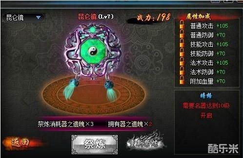 4.升级古器等级可以获得器之遗魄,该道具可提升名器等级。