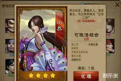 三国之刃小乔获取方法与名将组合分享,对于三国的大小二乔相信玩家都非常的熟悉吧。要知道游戏中作为东吴的两大才女是非常难得的,那么在游戏中小乔的获取方法有哪些呢。游戏中的第四名将阵小乔能够激活的名将组合有哪些呢,下面就与小伙伴分享一下小乔的获取方法与名将组合吧。
