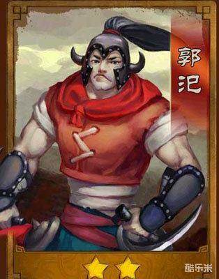在我们游戏中在名将的挑战中基本遇不到的一个BOSS郭汜相信大家连打都不用打了吧,这还是非常的不错的。在我们的游戏中郭汜作为一个二星的名将卡,在我们游戏中的掉落机率只能说是一般。并且在名将组合上面只能有两星这个层次中算是不错的,毕竟不同的星级增加的属性差距还是有些大的。不过获取简单又可以增加战力,还是可以凑合着用的。
