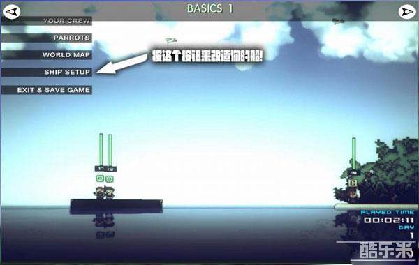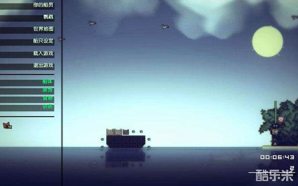 在所有东西都装备完毕之后,你就需要一艘舰船来开展自己的海盗生涯,首先按空格键打开菜单,然后选择建造舰船,要知道我们的这个海盗是不会游泳的。