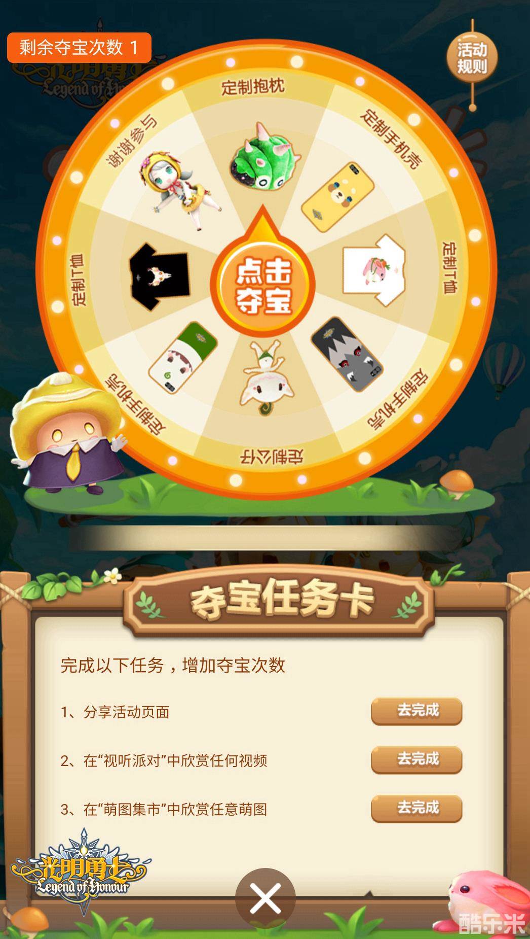为了迎接萌主们来到卖萌祭,无论是初涉卢米娅大陆的新人,还是游荡许久的异界大咖,我们准备了海量的卖萌好礼。萌主们除了可以尽情在卖萌祭尽情展现自己外,还能通过完成任务的方式获取夺宝资格,在夺宝大转盘得到限量毛毛虫抱枕、订制手机壳,更有机会获得游戏专属T恤,从上到下全身都用《光明勇士》官方周边武装起来!