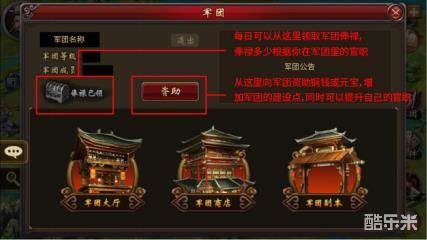 打开游戏界面右下角书册标识,竖排出现军团,邮件,任务。