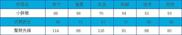 卡布西游小胖墩、仗鼓武士、擎鼓先锋种族值: