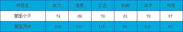 卡布西游蒙面小子、蒙面灵侠种族值: