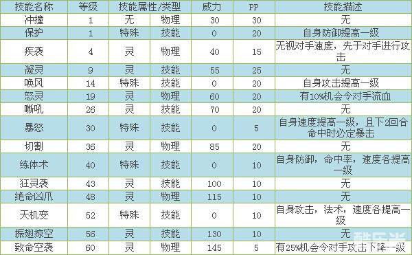 卡布西游蒙面小子、蒙面灵侠技能表: