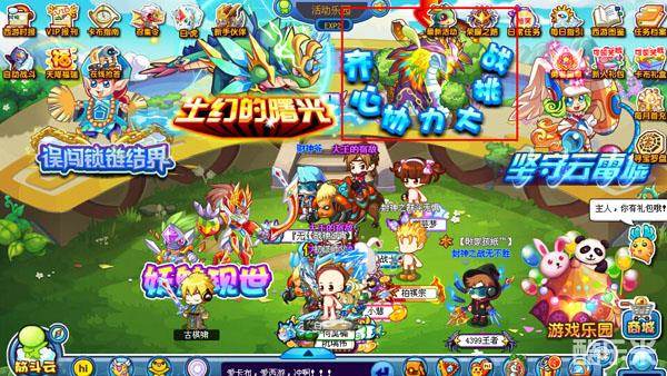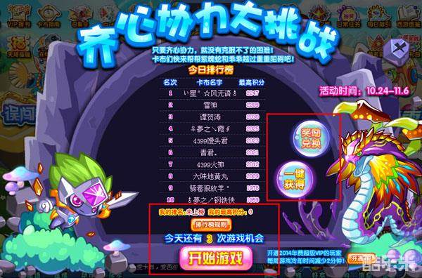 卡布来到活动乐园,点击右上方的“齐心协力大挑战”活动吧。