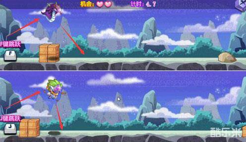 两只妖怪其中一只没有成功跳跃障碍或者碰到障碍,会让我们失去1个机会哦,本轮游戏一共2个机会,当第2次失去机会时,游戏就会提前结束,卡布要当心咯!