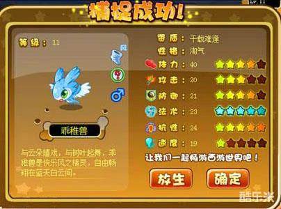 捕捉成功,这只乖稚兽资质看起来还行的样子,卡布你也快来捕捉风系野怪乖稚兽吧!