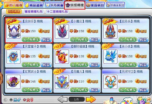 进入商城,选择妖怪精魄栏,找到没伢仔精魄点击购买!
