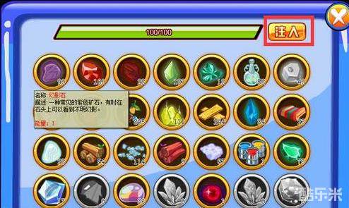 注入能源,点击已经拥有的道具直到加满能量条(建议使用普通的道具来加,因为能量只计算数量,不分道具的稀有或者普通)。加满后点注入即可!