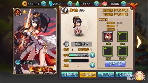进入卡牌进阶界面就可以看到卡牌当前的仙阶,以及卡牌升阶所需要满足的条件:灵力、晶魄、五行等级,以及四种材料物品,全部集齐后,点击提升仙阶。