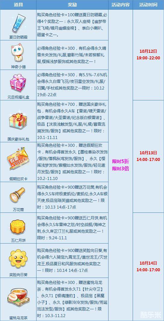 10月12日-10月14日期间每天固定时间段,【夏日防晒霜】/【神奇小猫】等多款宝箱琳琅上架,有机会得永久S车【终极麦凯伦】/【麦凯伦】/【雷神之怒】、首发永久T1【针尖守卫】、永久雷诺系列极品A车,以及其他各式极品,你不容错过!