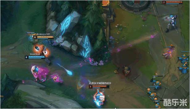 (2)WEWR二连:EZ的这个连招是有一定的先决条件的,当你发现对手是两个英雄黏在一起的时候可以使用这个连招,这个版本的EZ E技能会优先寻找被W技能标记的对象。
