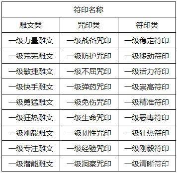 符印等级:共5个等级(暂时开放1级符印)