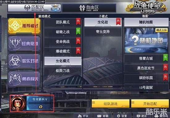2、点击进入推荐模式-生化模式,选择子模式中的生化战或者寄生变异就可以进行一场生化排位竞技比赛了!
