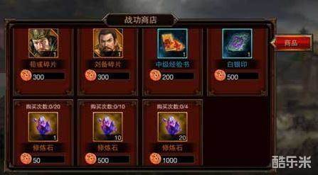 4)黄巾之乱的叛军商店内,可以用战功购买,50战功可购买1个修炼石。