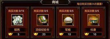 商城一天可以购买5次杜康,每瓶消耗10个元宝,提高VIP等级可以提升购买次数。在这里小编有个小提醒,购满5次杜康后要记得到每日任务获得奖励,除了可以获得30元宝还能获取每日积分。