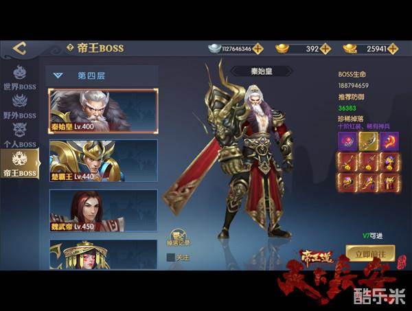 成功挑战帝王Boss即可拾取丰富稀有掉落