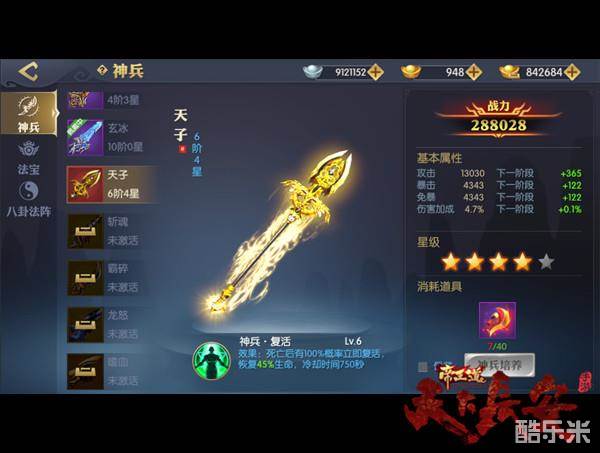 除单个神器外,八卦法阵还可通过整体进行强化。通过消耗诸葛锦囊,法阵等级将获得提升,法阵内各神兵、法宝间的共鸣也会更加强烈,力量联合之后可触发更强大法阵属性,使玩家实力飞升、所向披靡。