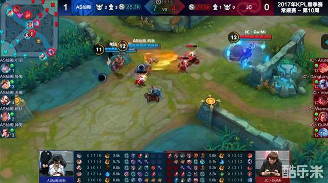比赛回顾:开局双方平稳发育,3分AS仙阁中路河道草丛埋伏,成功击杀JC两人,AS仙阁诸葛亮拿下双杀,前期AS仙阁掌握比赛节奏通过不断入侵JC野区不断扩大人头领先和经济领先,比赛进行到9分30秒AS仙阁人头数以10比2领先,并与JC保持4千经济差。10分35秒AS仙阁与JC在主宰河道发生团战,AS仙阁.神男使用诸葛亮打出一波3杀,将经济差扩大到7千。13分13秒AS仙阁一波强推JC基地,并顺利拿下首场比赛的胜利。