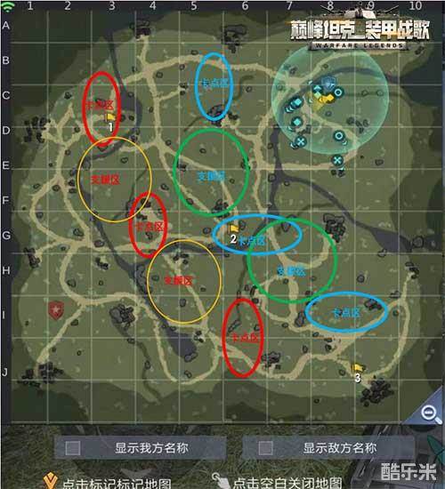 3卡点区:卡点区属于防守区,主要是给对方压力尽量迫使对方退回防守或选择其他路线,最大程度限制敌人。与压制点不同,卡点区的位置和打法都比较灵活,也不需要像压制点一样死磕,如果敌人强行突破必要时可以选择暂避锋芒、保存实力。