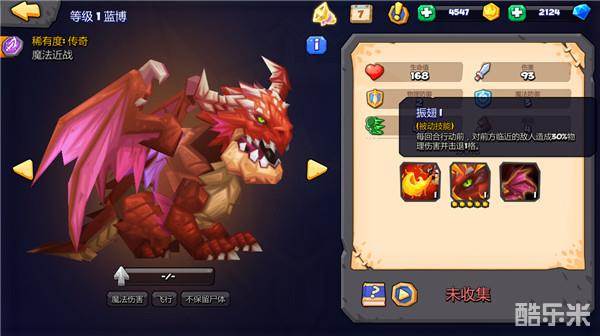 我们先来看下蓝博在九级时的属性,它自带1点防御穿透,回合行动前振翅有30%的物理伤害,2格的普攻范围和大招魔法伤害的原因使得它成为游戏中大多数物理坦克怪兽的克星。