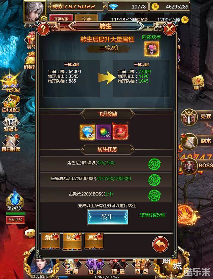 游戏中,系统会一直提示玩家有任务可以做,这个玩家一定要优先去完成,因为完成任务之后可以解锁各种强力内容,如翅膀、坐骑、转生等等,所以一定要第一时间完成。