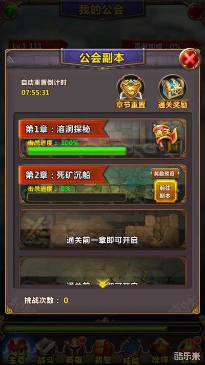 如果觉得每天打野外boss还不够,那就去打公会副本的BOSS吧。虽然门槛低,但是每个章节的副本都有每天的挑战次数限制哦,不过小伙伴们也可以消耗符石来购买挑战次数。每次的挑战都能获得金币奖励,只要章节通关后,全体公会成员都能获得大量的金币和一定量贡献值奖励。除此之外按照伤害量的排名,还会追加不同的贡献值奖励哦。听到奖励后,小伙伴心动了吗?如果心动了,那就让公会副本变成你的日常吧。