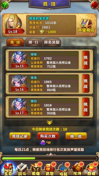 小编建议大家,先是在低于你战力的玩家里选一个排名最高的对手,这样可以最高效的提升你自己的排名。而大家每天参与竞技的次数都是有限的,所以要好好利用有限的次数去提升自己的排名。