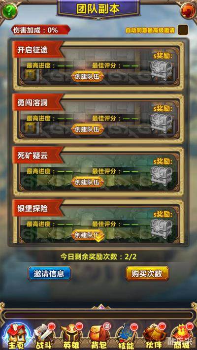 团队副本是冒险下的一个玩法,玩法十分简单,就是建立队伍或者加入队伍,人数达到三人之后就会自动开始战斗。而且只能邀请好友、同一公会成员进行组队,战斗时只有英雄参与战斗。战斗结束后,会以邮件形式发放奖励。所以只要组好队就可以把它放在那里了,反正奖励会送到你的手上。