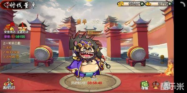 游戏中,当玩家解锁日常讨伐活动之——“讨伐董卓”之后,可以在每天中午12:30和晚上21:00前去挑战大boss,对董卓造成的伤害越高,奖励越丰厚。另外!此次更新之后,最后一击击毙董卓的玩家还将得到滚屏公告全服的奖励,整个无双世界都将瞩目的荣耀~!
