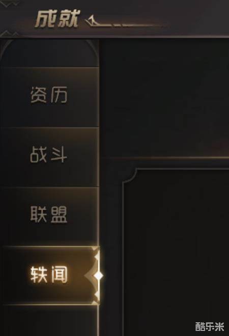 打开成就系统我们看到的页面其实并不是全部,整个的成就系统分为四个部分,分别是资历、战斗、联盟、轶闻。