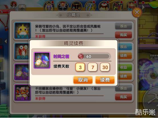 选择自己喜欢的小精灵并购买,购买后放出小精灵,他就可以帮助你自动拾取掉落的物品啦!