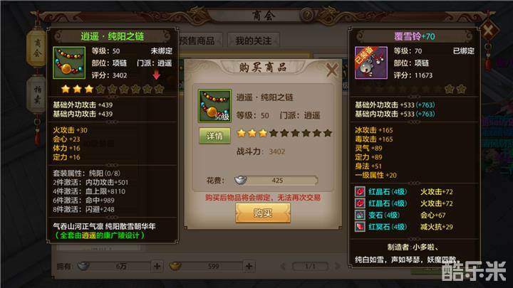 这个时期的门派套装已经不能满足于我们的需求所以我们要把前期积累的强化材料拿出来大量做手工,经济型,任意性少侠都能承受适应这段时期,在装备的选择上这段时期尤为重要,因为高战力打试练,属性不对又不能发挥出门派优势,所以我们要好好选择。首先,防具的选择必须要带血上限,体力和抗性,因为逍遥比较脆皮,没有血量和抗性的支撑不足以持续保持输出,容易被秒,所以体力,血上限,抗性这几个属性对于逍遥来说是黄金属性。攻击装备的选择上我们要选择火属性攻击,体力,内功,会心。逍遥是火属性攻击,火属性会发挥出逍遥最大的优势,体力为逍遥提供血量支撑,内功提供基础攻击,会心增加暴击概率,装备上拥有这些属性装备的少侠会是非常暴力的逍遥。