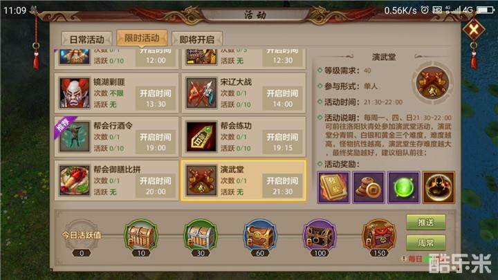 演武堂活动分为3个等级,分别是青铜青铜、白银和黄金,难度越高,怪物越强,奖励自然越好。