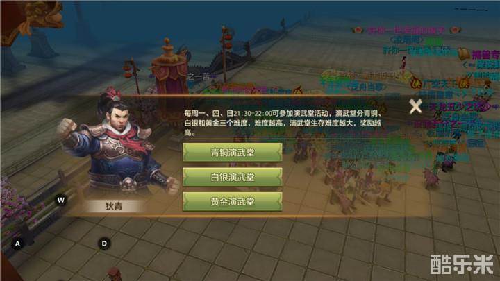 当少侠40级之后可以去往洛阳狄青处对话进入演武堂。