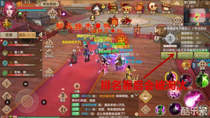 演武堂既然是演练武艺自然少不了少侠之间的比拼,在演武的过程中,积分排名较低的少侠会被淘汰出场。