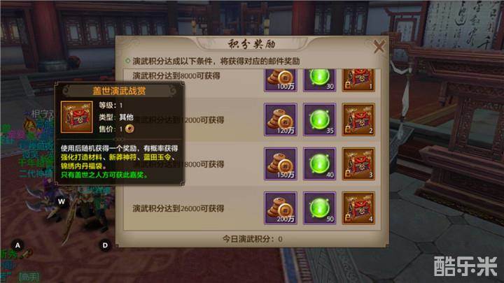 演武活动结束之后将会按照积分来发放演武奖励,而演武奖励非常丰厚,说是让人垂涎三尺都不为过,各种珍兽内丹,蓝田玉令都有概率获得,看到这些让人口水直流的奖励,少侠们可千万记得参加演武堂活动,如果错过了,一定会后悔。