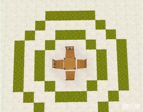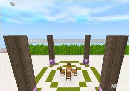 2、选择四个角的位置,放置5格高的桃木柱子,每个边做出顶