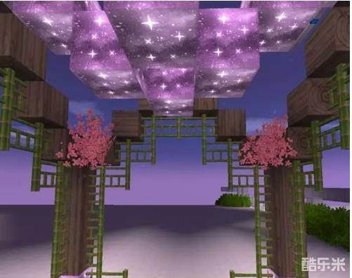 制作材料:发光方块、竹子、桃花、珍木树叶、桃花木