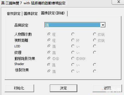 这次又好多玩家反应真三国无双7繁中版本config是乱码,主要是上面选项看不懂的,如果你的英文版删了的话那就照着这个去该吧,图片还有点乱码,不过一个是分辨率,你可以进游戏再改,另外一个是“高”的意思。