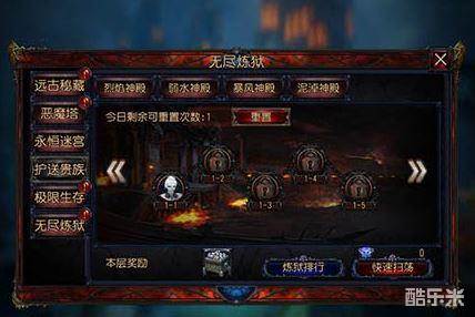 游戏在26级时开启无尽炼狱功能,战胜自我,勇闯炼狱。打开历练这个系统,然后选择无尽炼狱,有四个神殿可以选择,分别是烈焰神殿、弱水神殿、暴风神殿和泥淖神殿,可以获得的奖励也有所不同,然后开始挑战吧。每天可以剩余可重置的次数是1,也就是每天可以有两次挑战的机会,在副本和竞技场闲暇之余,来无尽炼狱爽快一下,绝对让你轻松卸下压力。