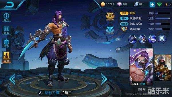 兰陵王是一位具有隐身能力的刺客,一技能具有一定的爆发能力,二技能有很好的减速效果,配合普攻或其他技能可以有控制作用。他的大招能使他进入隐身状态,隐身时间很长,这非常有利于兰陵王切入敌方后排,配合上其他技能的爆发和爆炸效果,很容易击杀敌方输出。兰陵王与韩信灵活性相比,韩信比较强,兰陵王在现身后,灵活性不是很强,很容易被围攻。而韩信有多段位移,能够轻松逃脱。爆发性上韩信不比兰陵王,兰陵王先二技能再配上一技能,会有很强的爆发能力,大招还有一段突进性的位移,很容易击杀对面。兰陵王在切后排时若有敌方英雄支援,那么兰陵王跟难走掉。