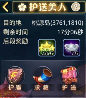4、护送期间可使用护盾获得防御,或向帮派成员求救,护送成功保护的一方可获得额外奖励。