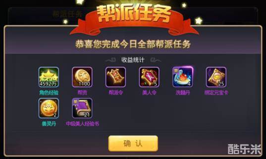 3)帮派任务:角色等级≥57,加入帮派后开启帮派任务,主界面任务栏可点击开始。帮派任务共20环,每环击杀地图上一定数量的怪物后,自动进行下一环。完成第5、10、15、20环可获得额外奖励。