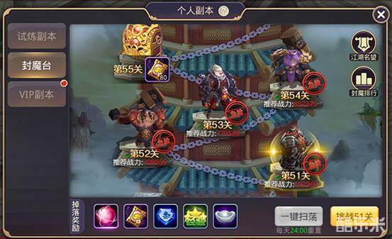 1.封魔台每天可无限次挑战未通过的副本关卡。
