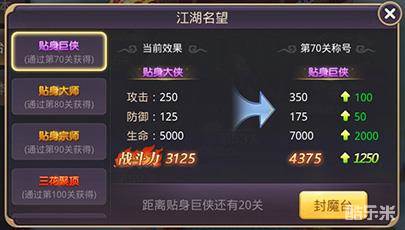 3.挑战通过特定关卡奖励江湖名望称号,增加大量角色属性。